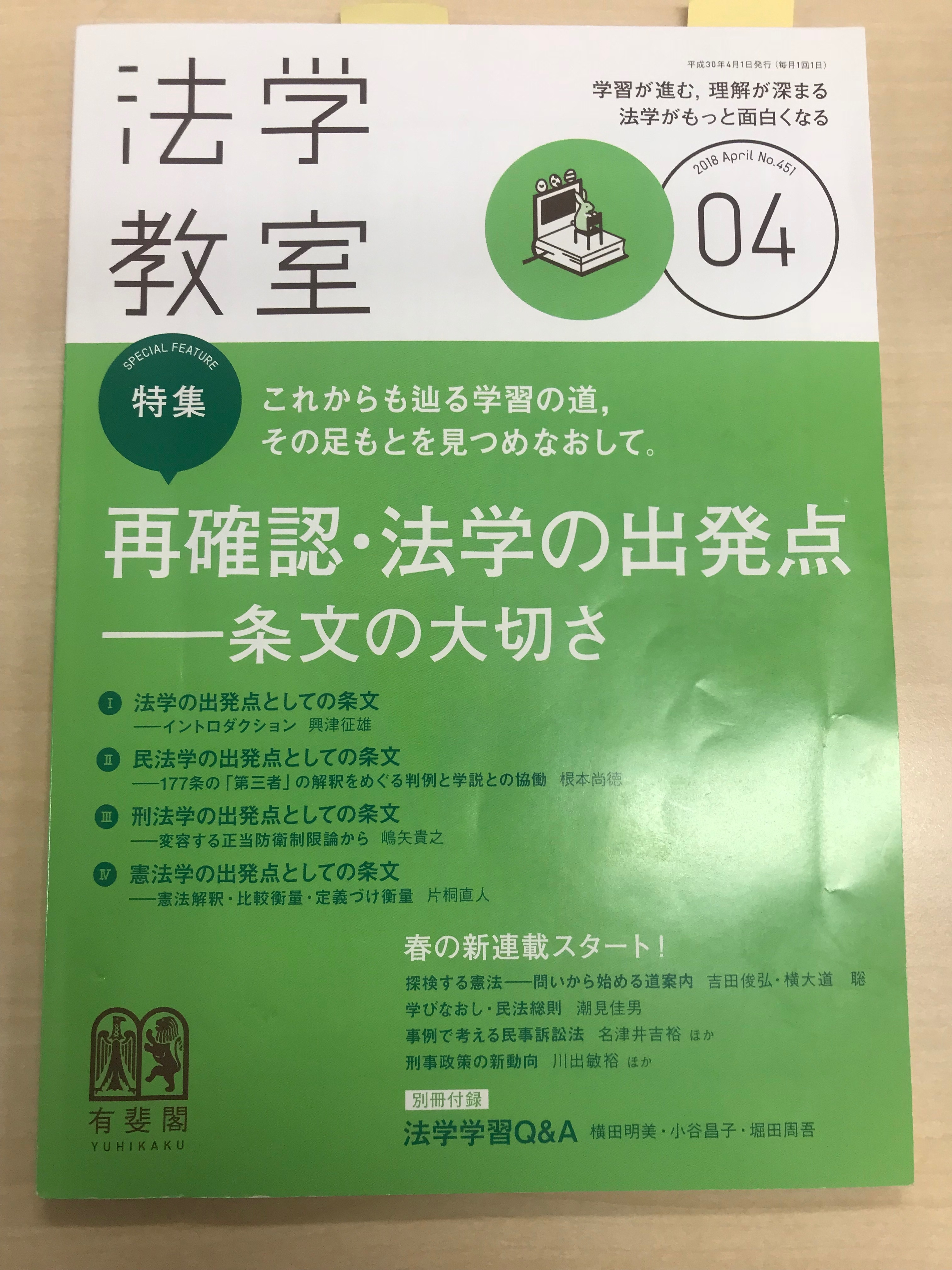 有斐閣の法律雑誌『法学教室』2018年4月号を読みました。